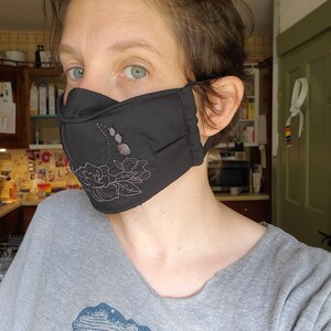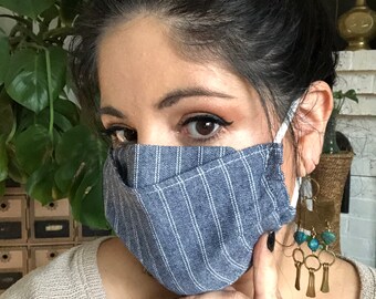 Mask is made from double layered lightweight cotton fabric with a poly layer in between.