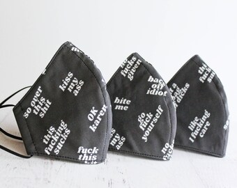 Express your frustrations with this swear word face mask.
