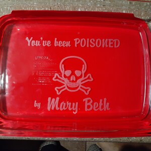The shop owners are super nice and they shipped this item crazy fast! The only reason I wouldn’t give it 5 stars is because the etching doesn’t come out great because the bottom of the Pyrex has other cleaning instructions pressed into the item which interferes with the design. I feel the custom etching would look a lot better on the side of the item, but the person who received the gift still really loved it!!!