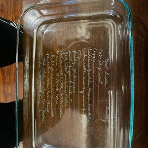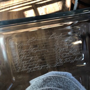 Transform Loaf HANDWRITTEN RECIPE into an engraved Bread Pan Pyrex - Family Favorite for Loved One - Family History Recipe. Meaningful Gift