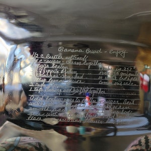 I got a bread pan engraved with my Gram's old banana bread recipe as a Christmas gift for my mom. The first dish came slightly scratched, so I reached out to the sellers and they remedied the issue at no extra charge within days! They were incredible to work with, efficient, and kind. Could not recommend their products enough!! Thank you Amy and Kevin for your help with what is sure to be this Christmas' star present!