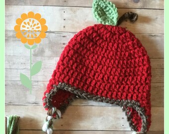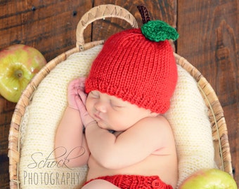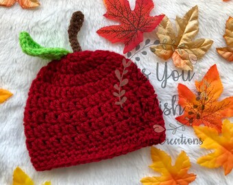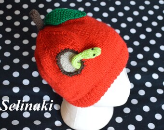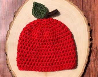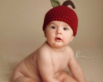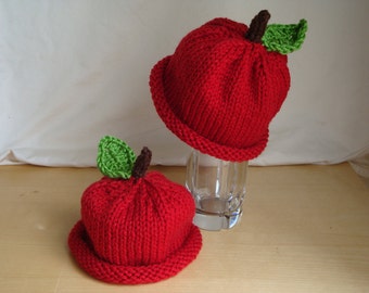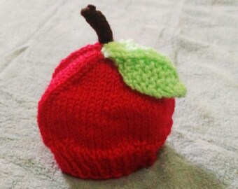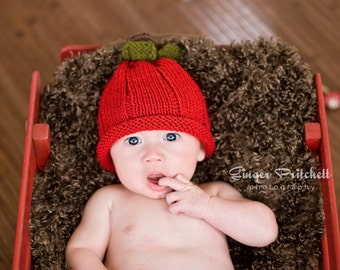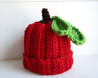 Apple Hat, Baby Child Apple Hat Knit Red Apple Hat Knit Child Apple Beanie Hat Baby Apple Beanie Knit Baby Apple Hat, Infant to Child Size