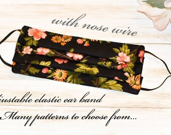 Summer face mask, fitted face mask, Adult face mask, face mask with filter pocket, washable face mask, adjustable face mask, kids face mask
