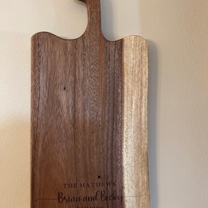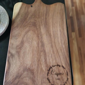 These boards are beautiful! These are becoming my GO TO item for weddings. So far the gift recipients have LOVED them. George has been incredibly responsive in time and attention. 4 have been completely custom (I wanted the font styles and engraving options to match up with the couples' tastes). I've just ordered my 5th...this one's for me! Thank you Tuckahoe Hardwoods!