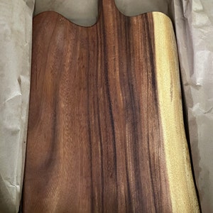 5 out of 5 starsGeorge and Tuckahoe Hardwoods continues to provide a beautiful handmade product. I’ve purchased 4 over the years as gifts. This is my 5th purchase, and this one for is mine. George worked with me to get the personalization style just right, and it’s beautiful! We ordered. The first board arrived shipped in bubble wrap and a shipping bag. The shipping bag was torn and the bubble wrap cam loose from the board. Needless to say it was damaged in shipping. I notified George and a new one was created and shipped out within 24 hours, I think. The 2nd one was perfect. Thanks again George. These are our go to wedding gifts for as long as you are doing this!