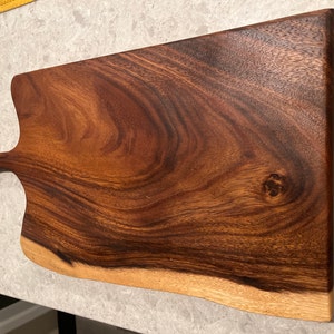 Extra Large Live Edge Handled Charcuterie Board - Cutting Board - Serving Board - Barbeque Board - East Indian Walnut - 24" x 12" x 1"