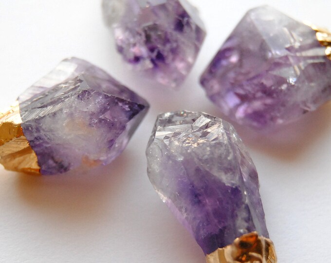Raw Amethyst Crystal Necklace - Small - Gold Plated - FREE US Shipping