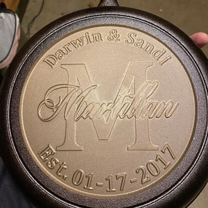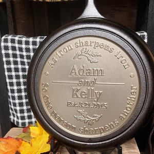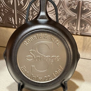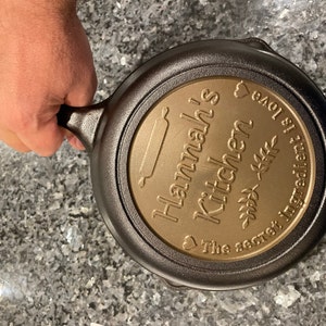 I ordered the 12” cast-iron skillet as a gift for my son-in-law who really enjoys cooking with cast-iron. I heard from the shop almost immediately after placing my order. They communicated about the engraving to make sure it was what I needed and within hours I had a prototype to review and approve. Customer service was excellent…from the ordering process to the quick shipping and arrival. I have no idea how good it will be for cooking but it sure is a beautiful and special personalized gift!