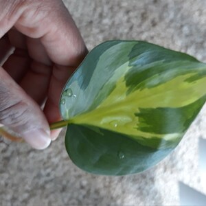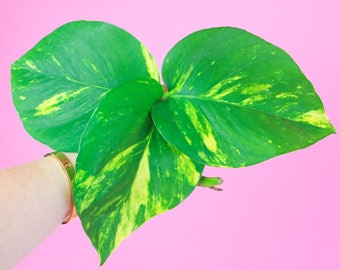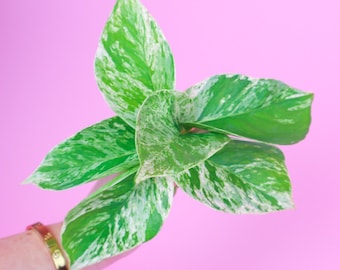 Beautiful lime green & yellow variegated leaves. Sometimes the stems will have a gorgeous pinkish/orange hue! This plant is a very quick grower given the right conditions, and very easy to care for!