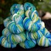 Hand painted Superwash Sock Yarn, 'Splash' colorway, blues, lime green, white