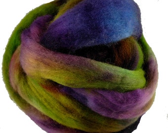 Hand Dyed Australian Wool Roving,Purple, Green, Turquoise for Spinning or Felting, 4 oz.