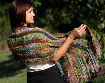 Hand Dyed Yarn, Shawl Kit, Wool, Silk, Mohair, Wrap, Rainbow Colors