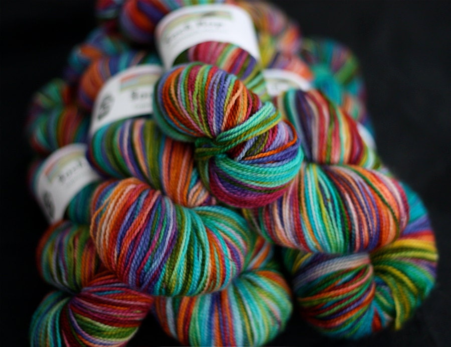 Hand Dyed Yarn, Superwash Merino Wool Sock Yarn, Rainbow Colored, 'A Day At the Carnival'