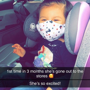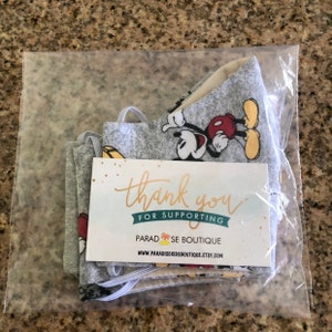 We love these masks. Our son is going through a Mickey Mouse phase so it's perfect for him! Fits well and appreciated that it was able to be tied into size he needed to stay on his face! Fast shipping!