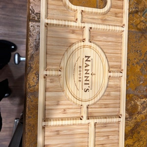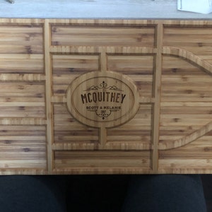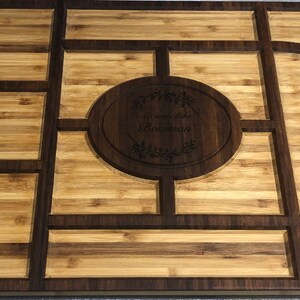 Made from FSC sustainably sourced architectural bamboo. All of our pieces are hand finished and truly unique with natural variances and inclusions. The engraved area will show a natural variation in color and tone.
