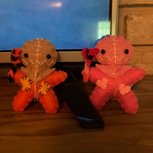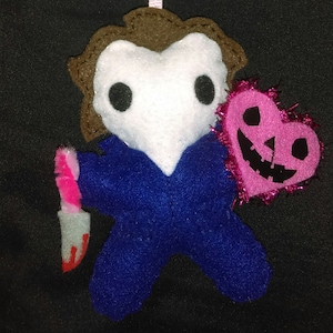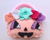This little plush spring flower Jack-O'-Lantern ornament is hand-stitched acrylic felt. He is stuffed with Poly-fil.