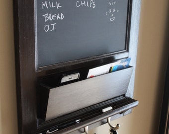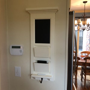 I had this custom-made for me. A chalkboard/mail slot/key ring organizer to fit my spot where I needed it to go and its absolutely perfect! The fit is perfect. The craftmanship is top notch. It arrived as expected with protective packaging. The piece was a bit more than I wanted to pay but I am sure it will be worth it in the end because the piece is very functional for my everyday hectice life. I highly recommend this seller. He comminicated very quickly and was very specific and accomodating. Thank you!