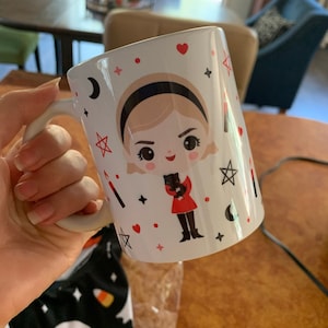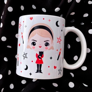 This 11 oz. ceramic mug features my Sabrina Spellman design - perfect for any Sabrina fan! All my mugs are professionally printed and sublimated in the USA and are dishwasher safe AND microwave safe.