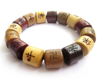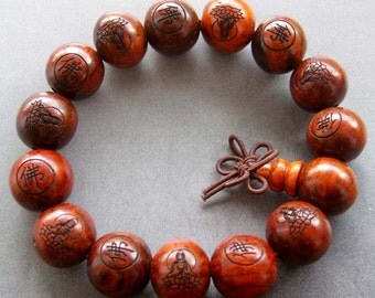 10mm x 8mm Jujube Wood Carved Skull Beaded Hand String Prayer Beads Tibet Buddhist Mala Bracelet T2597