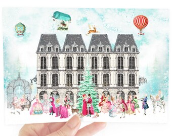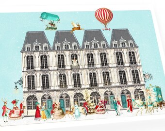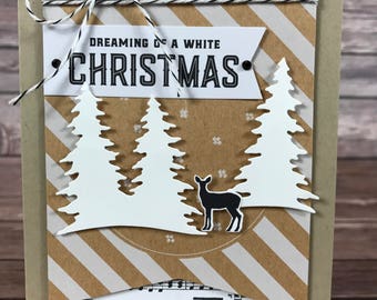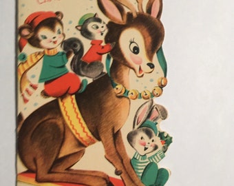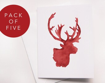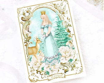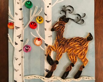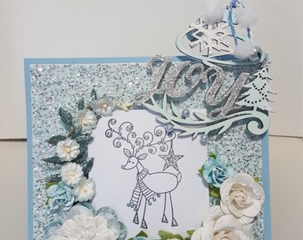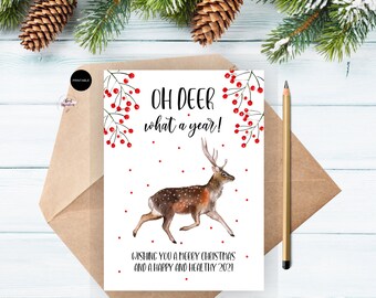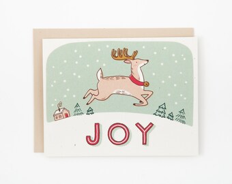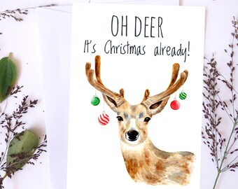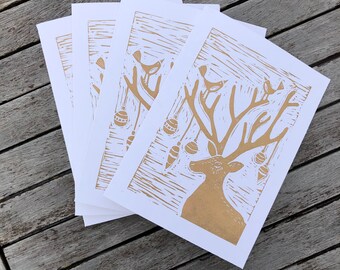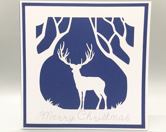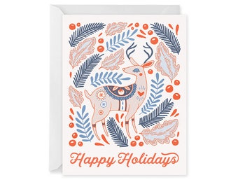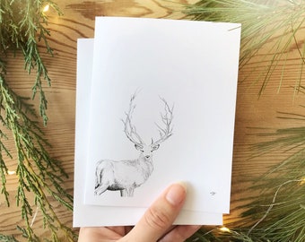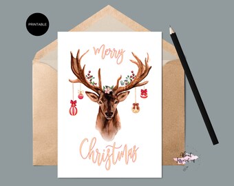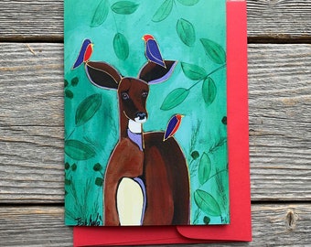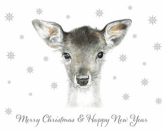 Deer Christmas card, dreaming, reindeer with a robin, traditional Christmas card, blank inside