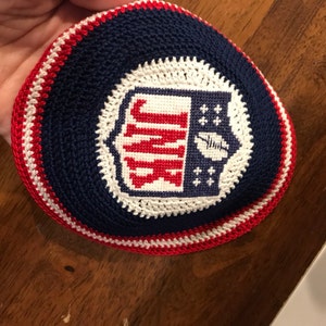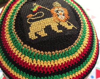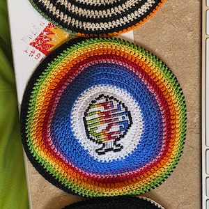 Here is a Black Lives Matter inspired kippah. It is hand crocheted and cross stitched of all cotton thread. It is about 6 inches in diameter.