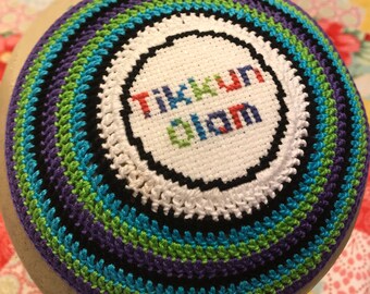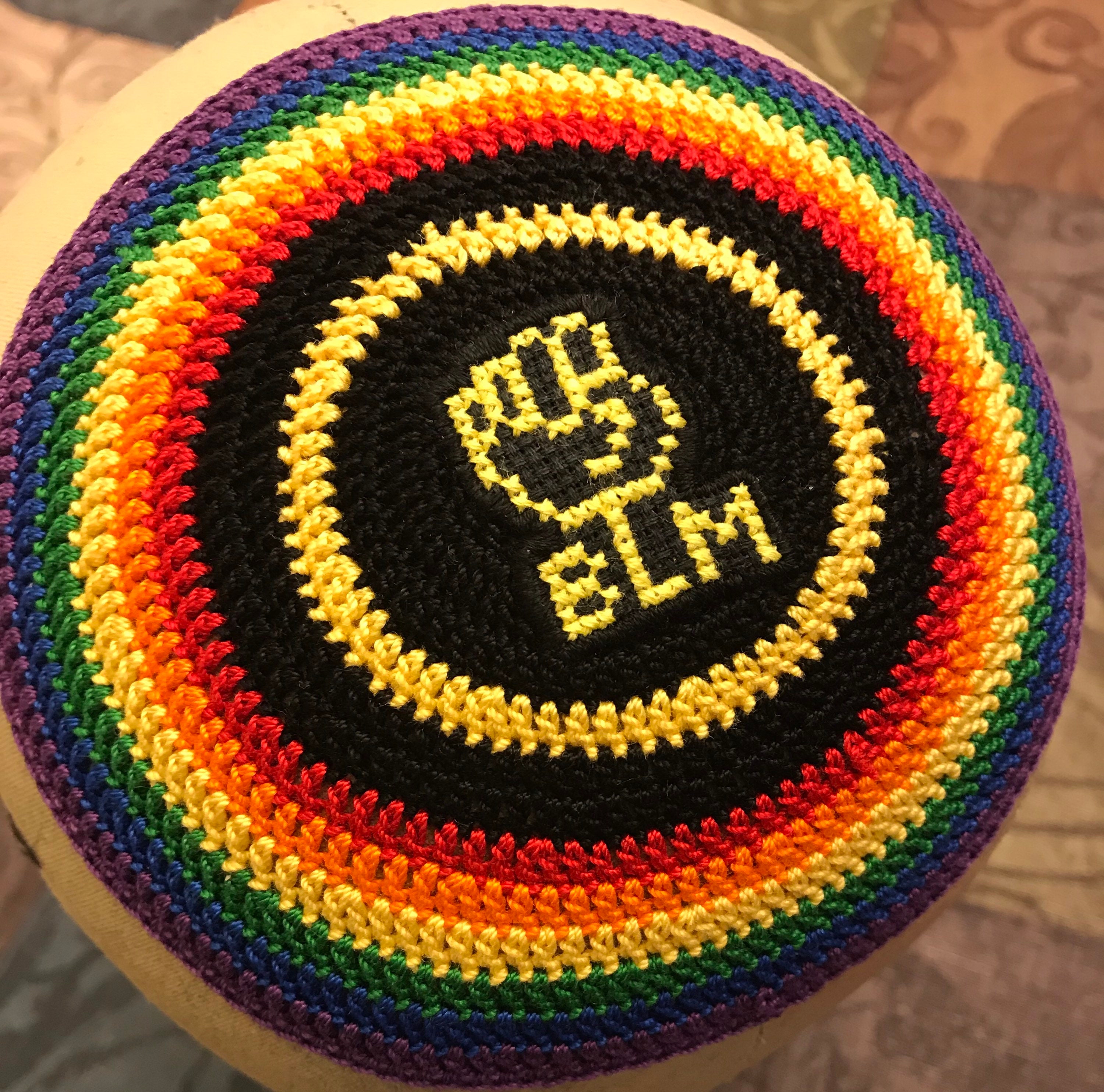 Black Lives Matter kippah yarmulke hand crocheted and cross stitched all cotton. Tikkun olam repair the world. Always custom made for you.