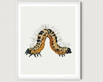 Vintage Caterpillar Illustration Color Book Page Print