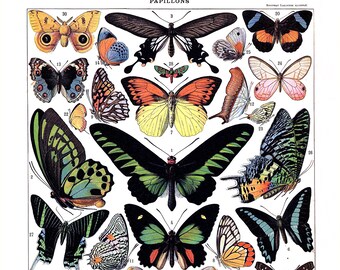 Vintage Butterfly Illustration Color Book Page Set Lot