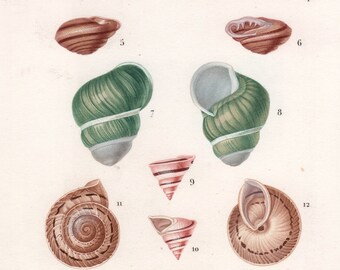 Vintage Sea Shells Illustration Color Book Page Set Lot