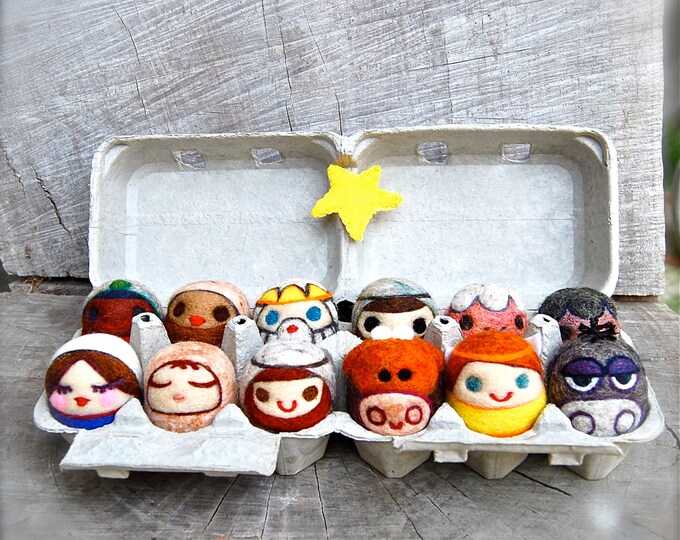 Needle Felted WOOLY Nativity Set Toys Made to Order