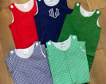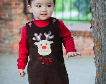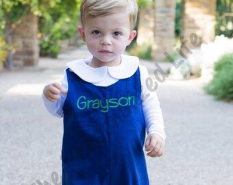 This corduroy longall can be personalized with your child's name, monogram, or a classic embroidery design, like a fleur de lis. Perfect for Christmas pictures. A boy's short jon jon and a girl's A-line jumper are also available in other listings within my shop.