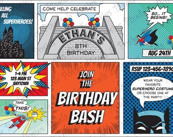 Super Hero Photo Invitation Birthday Party Custom Printable Digital File Spiderman Superman Batman Captain America Superhero