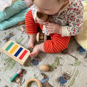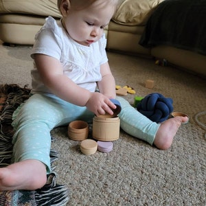 SAFETY: Babies should never be left unattended while playing with wood baby toy. Inspect for broken or worn parts before each use. Playful Petalz cannot be found responsible for any injuries incurred while using our baby products. These baby toys contain small parts. Customer assumes full responsibility for ensuring product is used safely and any liabilities.