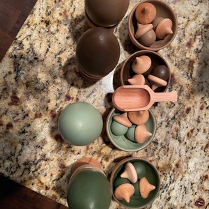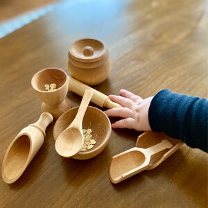 Waldorf Toys, Montessori Toddler Wood Pretend Play Kitchen Set, Wood Dishes, Bowls, Plates, Cups, Spoons, Pot, Natural Preschooler Toys, Organic Toddler Toys