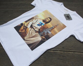 Zombie Moose Attack Shirt white on kelly green lg and XL