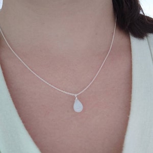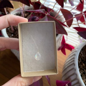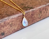 Rainbow Moonstone Necklace, June Birthstone, Minimalist Moonstone Teardrop Pendant, Simple Moonstone Jewelry in Gold or Silver, Gift for her