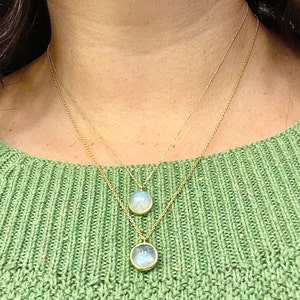 Rainbow Moonstone Necklace, Blue Flash Moonstone Round Pendant, Layering Drop Gold or Silver, Minimalist White Jewelry, Mother's Day Gift