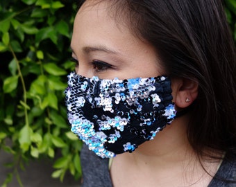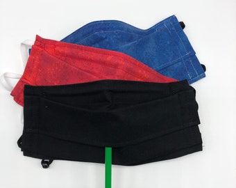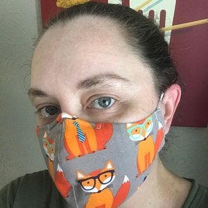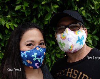 Please note: all masks are made by hand. Print placement may vary and small variations may occur. ie: lining color and pony bead color on the adjustable ear loops.