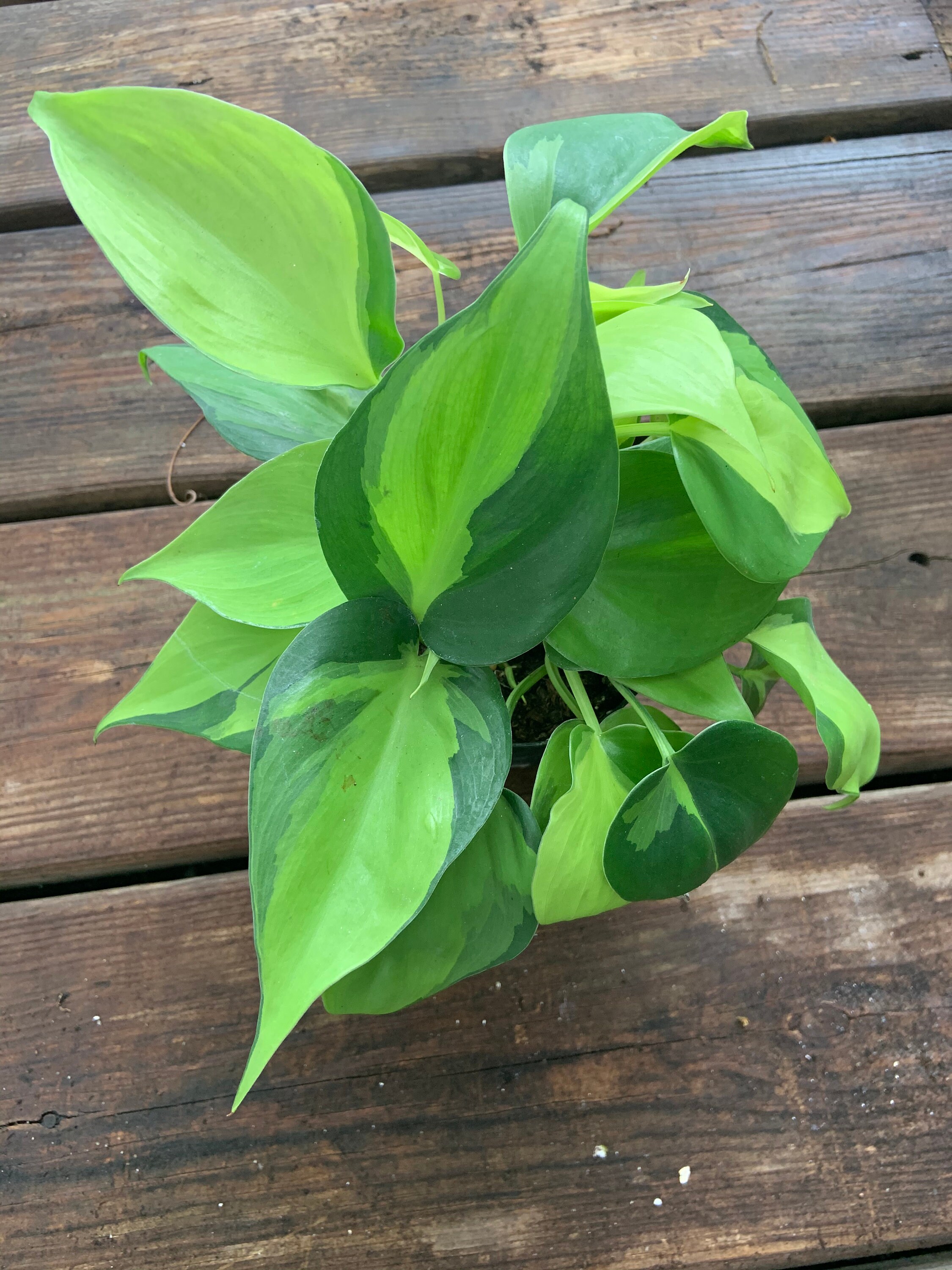 Philodendron hederaceum ‘Brasil’ is a masterpiece. The broad heart shaped leaves feature bold paint-strokes of color.