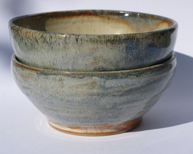 Handmade Stoneware Bowl - Mottled Blue and Shino