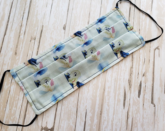 ADULT RARE Jiminy Cricket Pinocchio Geppetto Reusable Disney Face Mask Mickey / 2 Cotton Layer / Elastic / Washable / Ship NEXT Day