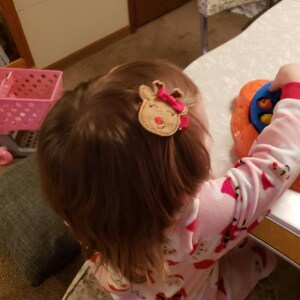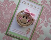 Simply the sweetest gingerbread girl on a pink alligator clip!