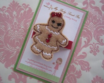 Girl hair clip - girl barrette - gingerbread girl hair clip - Christmas hair clip