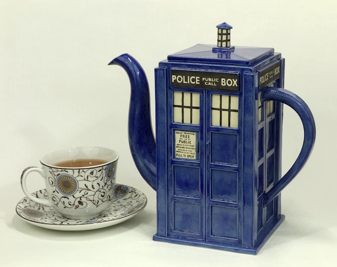 TARDIS Teapot: Made-To-Order Handmade Blue Police Box Teapot