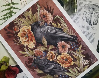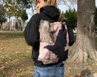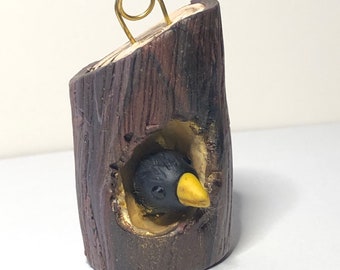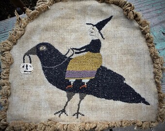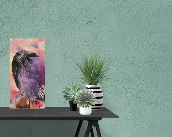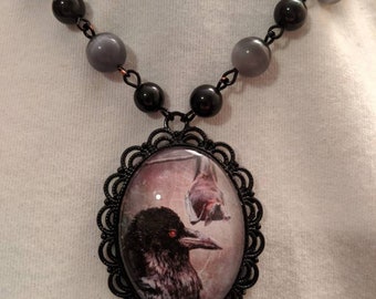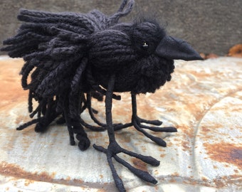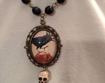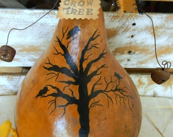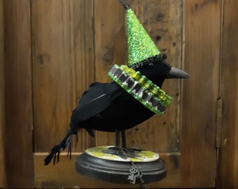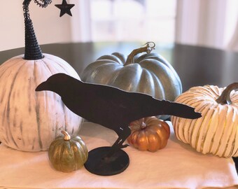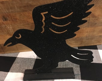 Upcycled Halloween Crow or Raven orange Plate Platter decor