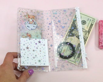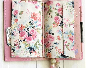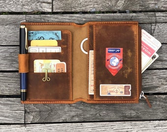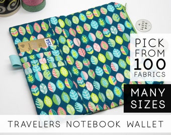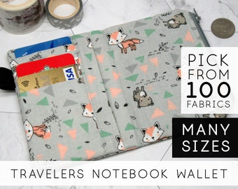 Beautifully hand made fabric Passport Wallet Insert (with card slots, slide-in/zipper pockets, and a pen loop) for your Traveler's Notebook As A Planner. Many sizes are available and you can chose a different fabric from our collection of more than 100 colorful fabrics.