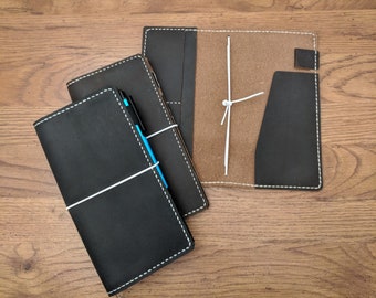 We have a wallet to fit your traveler's notebook - Nano, Micro, A7, Passport, Pocket, Field Notes, A6, Personal, Hobonichi Weeks, B6, B6 Slim, Standard, and A5. See photo/chart above for the approximate sizes in inches and centimeters.