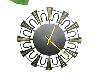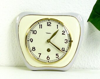 Vintage Wall Clock - Yellow Kitchen Clock - Wall Decor - Formica Mid Century Modern - Coupatan Made in Germany - Atomic - 1950s 1960s Retro