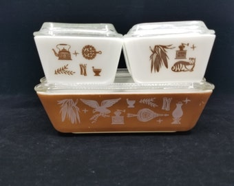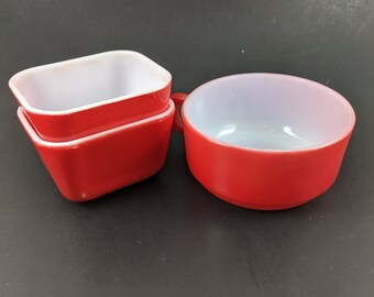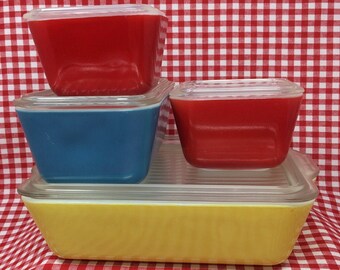 Vintage Pyrex Glass Refrigerator Dish Set 3 Pieces Blue And Red