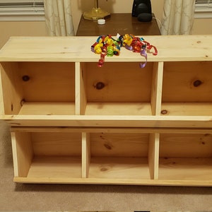 Make a set of sturdy storage bins with our woodworking plans. Each shelf has 3 storage bins and can be stacked (when stacking, please secure each units to the wall with brackets for safety). Great for storing and organizing many things in your home including: